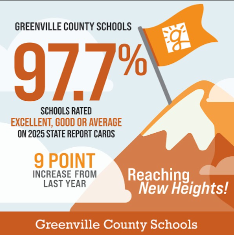 Reaching New Heights! At Slater-Marietta Elementary, we are joining the celebration! For the first time in Greenville County Schools’ history, the graduation rate has surpassed 90 percent—reaching 90.6% for the Class of 2025, an 18-point increase since 2012! Additionally, 85% of the graduating class earned College/Career Ready status, and 97.7% of Greenville County schools rated Excellent, Good, or Average on the State Report Card. This tremendous progress is a win for our entire community, and you’re a part of it! We are proud—but not finished. Together, we’ll keep the momentum going and ensure students continue to graduate with the skills, credentials, and confidence to succeed in college, the military, or the workforce! To learn more about the celebration, visit https://tinyurl.com/GCSReachingNewHeights