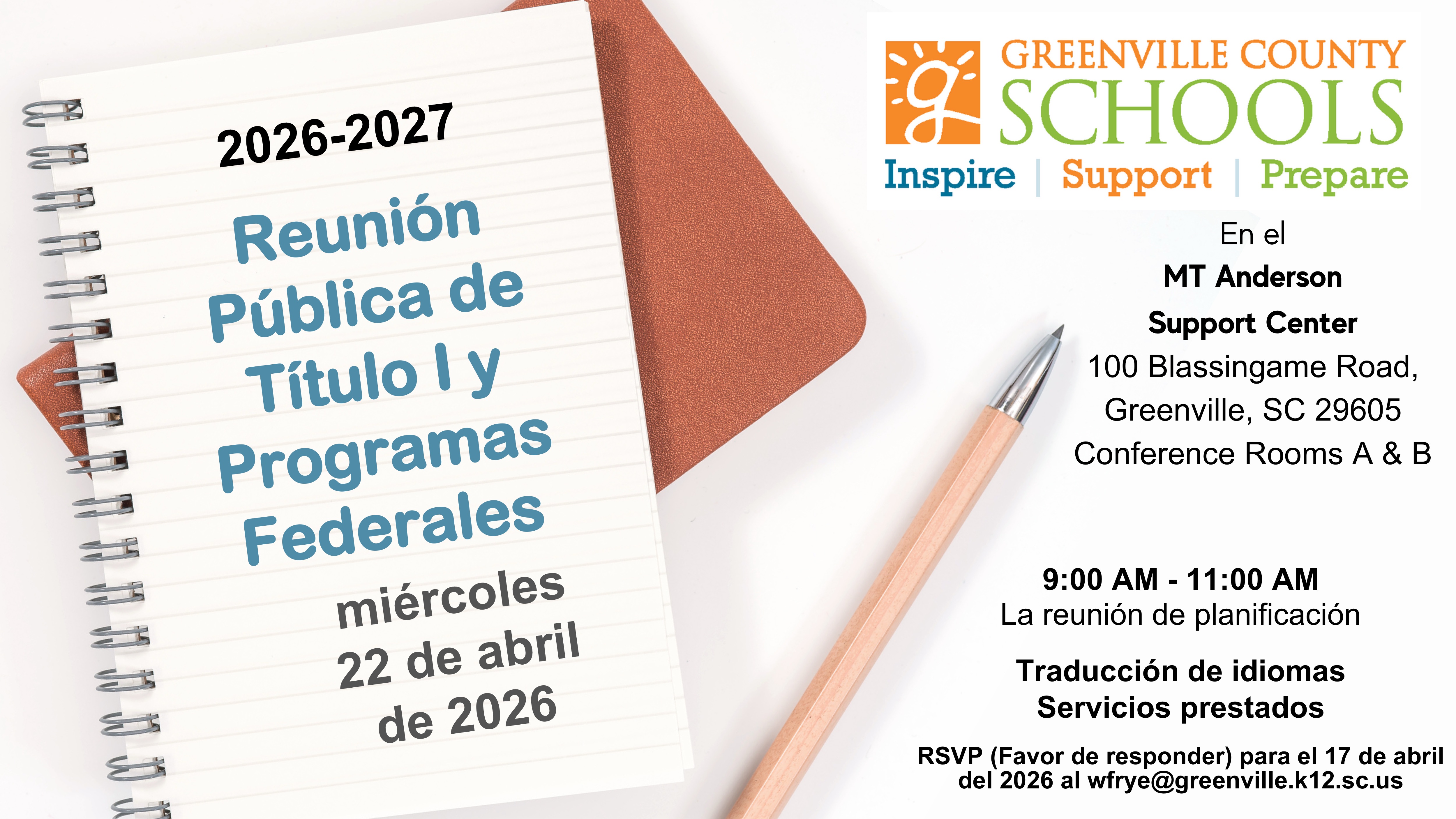 Title I Public Meeting - April 22, 2026 - 9:00am - M.T. Anderson Support Center