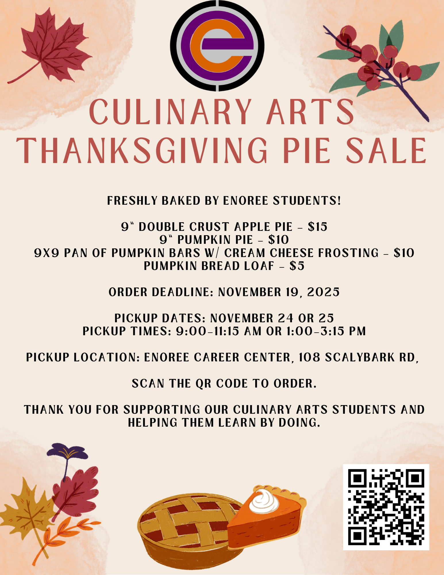 Culinary Arts Thanksgiving Pie Sale