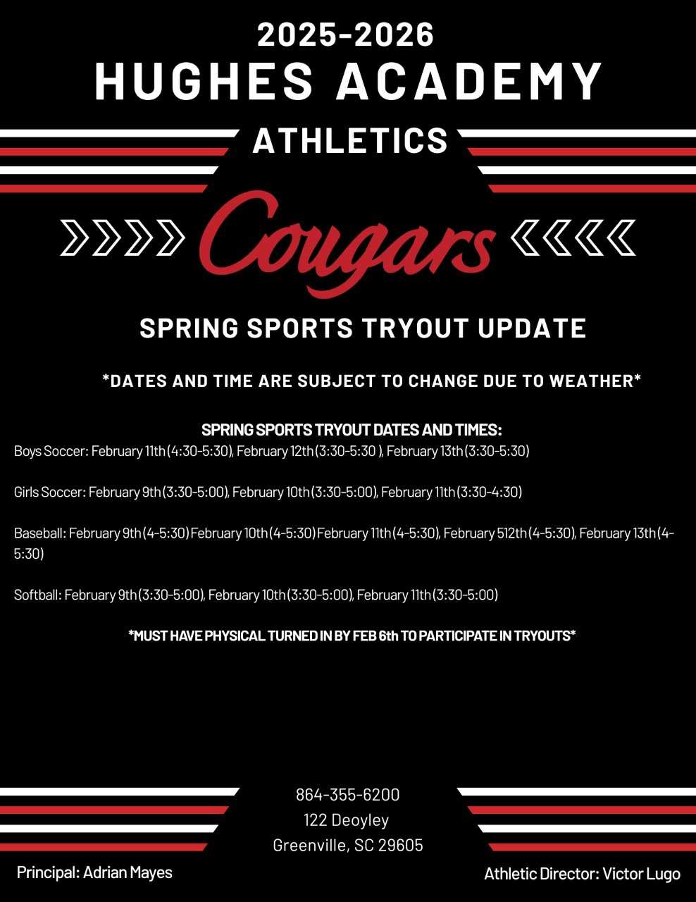 2025-2026 Hughes Academy Athletics Spring Sports Tryout Update