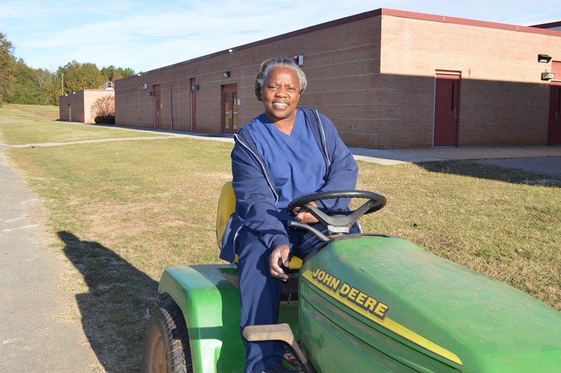 Jerry McJunkin has spent 30 years serving Greenville County Schools in the Grounds Division. His current position as crew chief gives him responsibility for the upkeep of 29 schools in one area of the district. “My job is to take care of school grounds. I cut grass, edge the sidewalks, drive the truck, work the backhoe, trim bushes, and spread mulch,” he said. Throughout the year, he and the crews are responsible for removing dead and fallen tree limbs for mulch. Other grounds employees are responsible for fences and signs as well as operating heavy equipment to dig up water and sewer pipes when they burst.