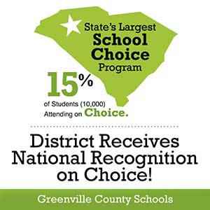 Greenville County Schools offers a wide array of choices for parents and students, including magnet academies, change in school assignment, career centers, Fine Arts Center, Sterling School, International Baccalaureate, and virtual options.