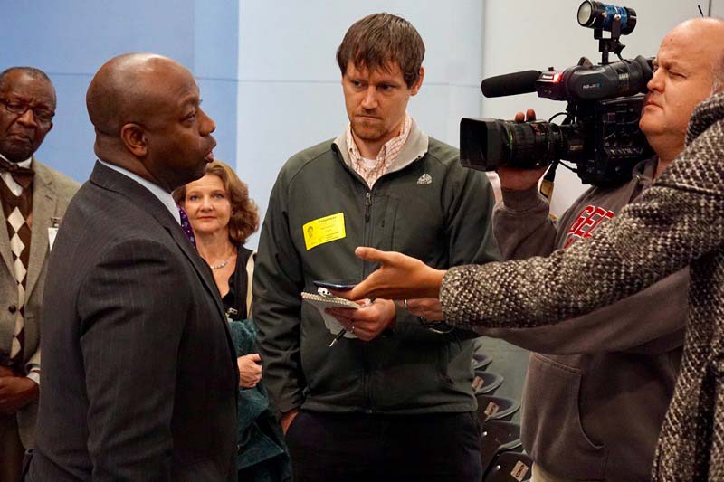 South Carolina U.S. Senator Tim Scott paid a visit to Carolina High School Monday morning. The Senator was inspired to make the stop after seeing an article in the Greenville News about a robe signing tradition started by Principal Michael Delaney.