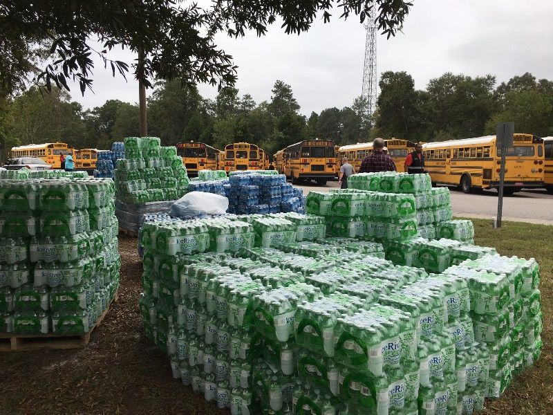 Los buses del Condado Escolar de Greenville han llegado a North Charleston para recoger a los evacuados.
