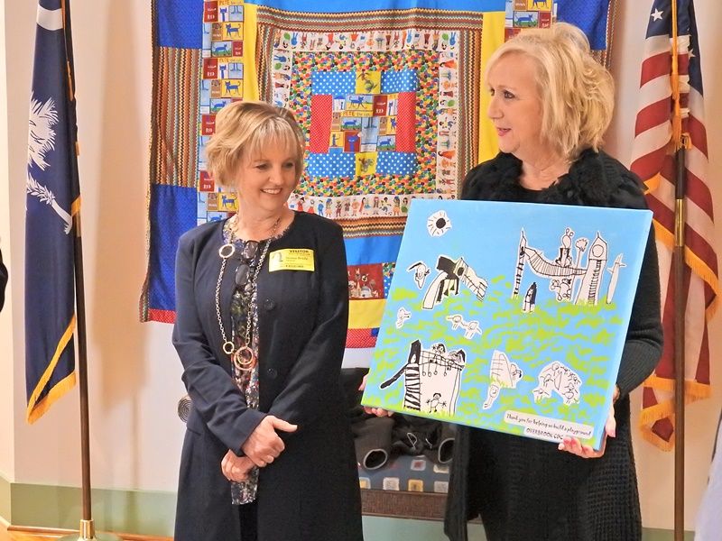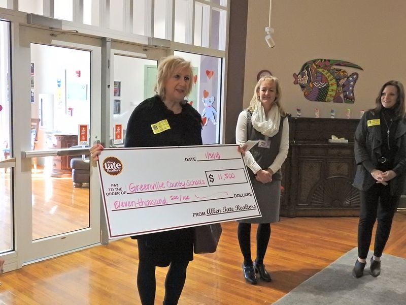 Representatives from Allen Tate Greenville Downtown visited Overbrook Child Development Center today to present a check to Superintendent Burke Royster. Overbrook CDC will receive some of the funds to build a new handicap-accessible playground. “We are part of this community and we want to be worthy citizens and give back to our community,” said Martha Hayhurst. The money was raised by Allen Tate realtors through a series of fundraisers. Thank you, Allen Tate Greenville Downtown for your generous donation!
