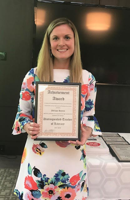 Plain Elementary first grade teacher Philippa Haynes was recently named the Distinguished Literacy Teacher of the Year by the Greenville County International Reading Association. Eighteen GCS teachers were nominated for the honor. After reviewing the applications, the judges narrowed the field to the top three. Mrs. Haynes was selected following classroom observations of the finalists. Congratulations!