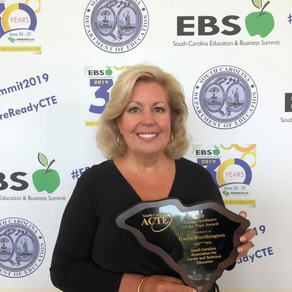 Gwen Worthington, School Counselor at Golden Strip Career Center in Mauldin, is the 2019 SC Association of Career and Technical Education Counselor of the Year.