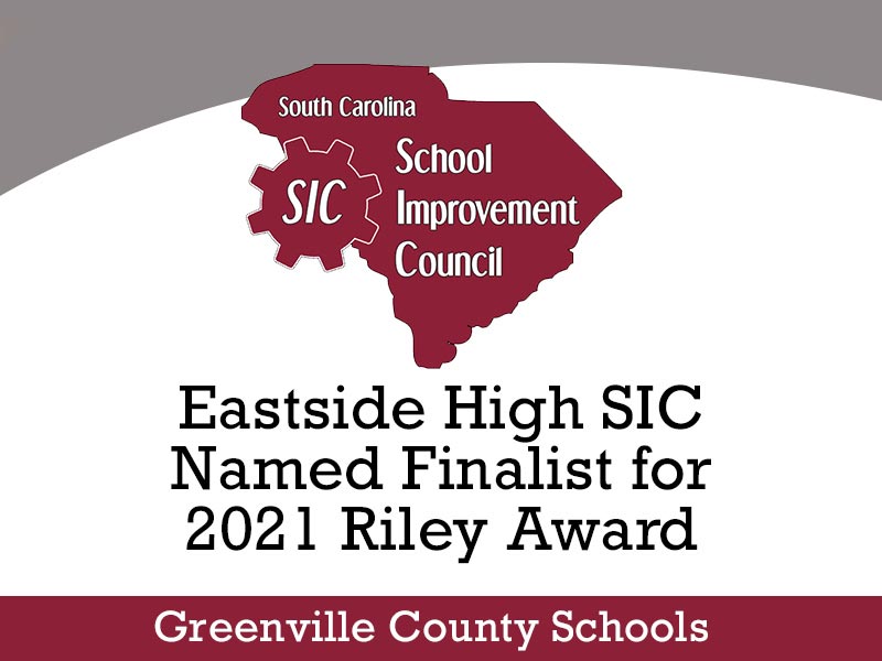 Eastside High School is among five South Carolina School Improvement Councils (SICs) that have been named statewide 2021 award finalists for their accomplishments in family and civic engagement within their school communities.