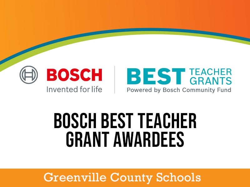 The Bosch Eco and STEM Teacher (BEST) Grant Program advances sustainability and STEM education in ways that inspire, excite, and engage students. Congratulations to the educators from Greenville County Schools who were awarded a 2021-22 BEST Teacher grant!