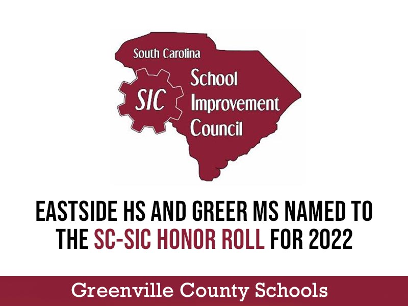 The School Improvement Councils for Eastside High School and Greer Middle School have been named to the SC School Improvement Council’s 2022 Honor Roll for their significant efforts to foster civic engagement in public education. The two schools are among seven public schools in South Carolina to earn a spot on this distinguished list and are the only schools from the Upstate to be chosen.