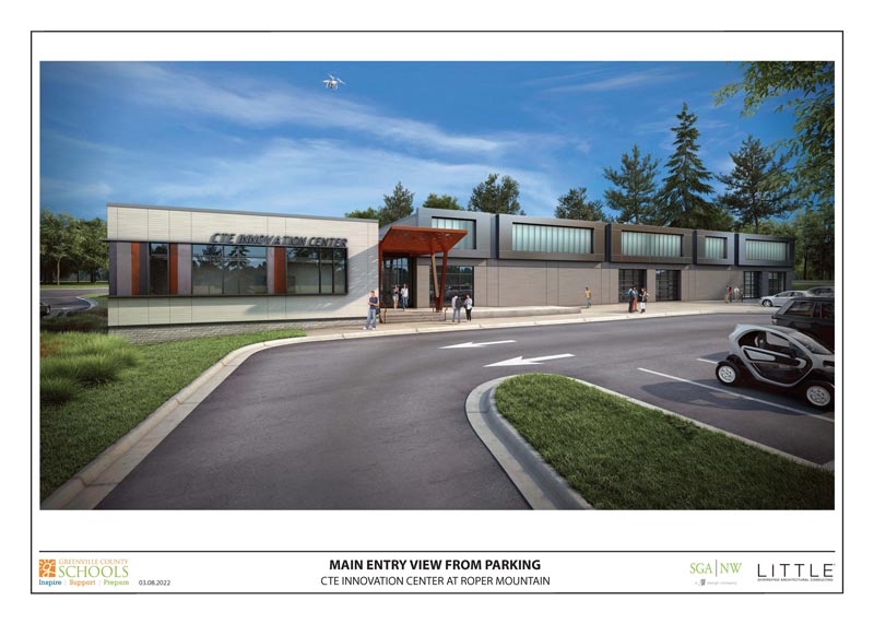 Opening in August of 2023, the $12.7 million, 29,145 square foot center will be a world-class facility created to house future-focused, innovative programs that have a growing presence in Greenville County. The CTE Innovation Center is located on the Roper Mountain Science Center campus.