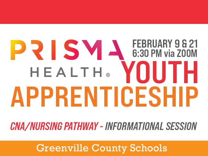 For more information about the Prisma Health Youth Apprenticeship program, please contact Rebecca Dhanarine, Greenville County Schools Regional Career Specialist, at rdhanarine@greenville.k12.sc.us.