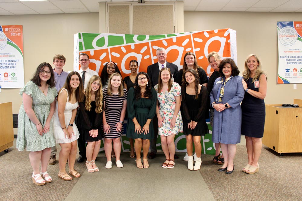 Students participating in the Dual-Enrollment Course, a partnership with Clemson University, were honored at a banquet Monday, May 22, 2023. These students spent a minimum of 60 hours this semester working in local schools with classroom teachers and have received over 20 hours of professional development from GCS personnel and special speakers. With successful completion of this program, each of these young teachers received three hours of college credit in education from Clemson University. Two students, Peyton Brazelle of Eastside High and Vanessa Feliz of Mauldin High, also received a $1,000 scholarship from the Greenville County Schools Foundation.