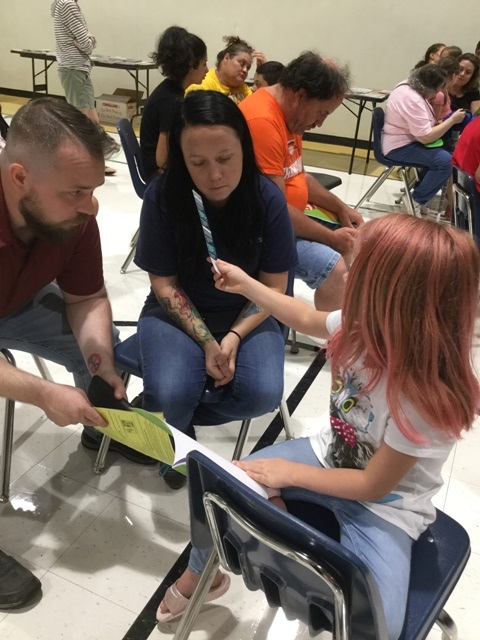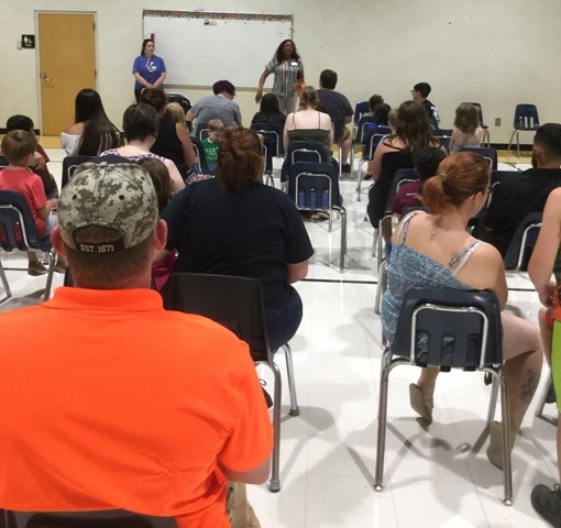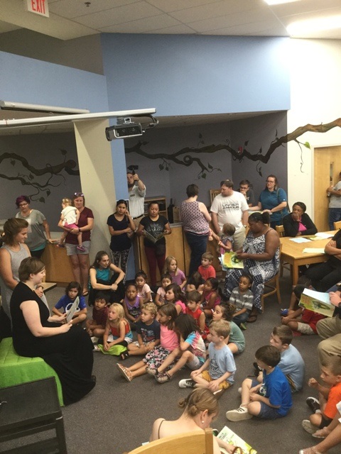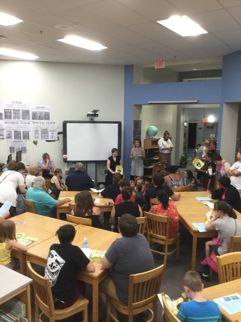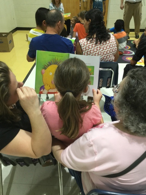 On Wednesday, July 17th Public Education Partners sponsored its annual Family Reading Night at Brook Glenn. Families are divided into their child’s age group, where trained volunteers lead interactive read aloud sessions. For the parents in attendance, the volunteers model useful strategies for reading aloud with their children. These strategies focus on increasing parents’ confidence and capacity to support year-round reading in their home. At the end of the event, each family takes home a copy of the read-aloud book and children select free, high-interest, age-appropriate books to add to their home library.