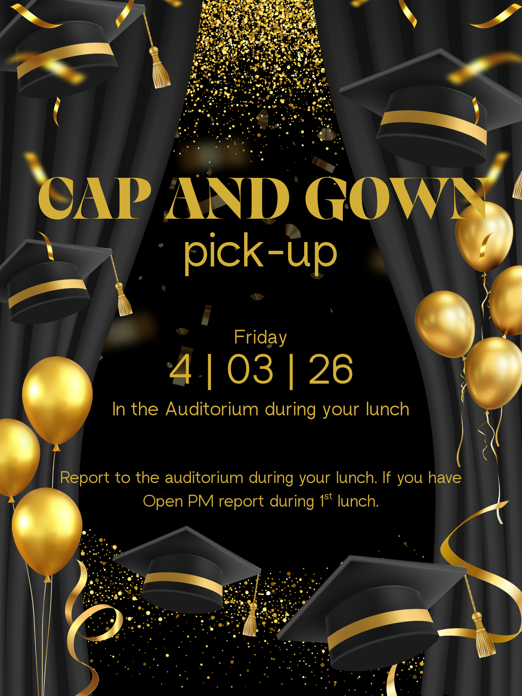 - April 3 - Cap & Gown Pickup