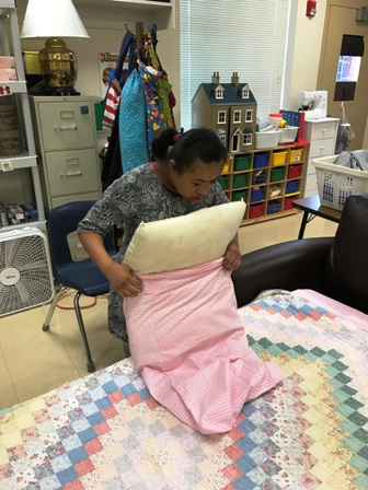 Students in Sarah Ashworth’s Daily Living class at Washington Center work throughout the school year on academic and functional skills to support student independence. Students visit the classroom once a week and activities are carried over to the primary classroom, at home and out in the community. Basic skills are introduced and increased in complexity with individual student success. Students perform domestic living, pre-vocational, personal care, workplace skills, leisure/recreation, technology and cooking skills while incorporating South Carolina State Standards and other school adopted curriculums. The students enjoy the exposure to new activities and the feeling of accomplishment upon completion of a skill.