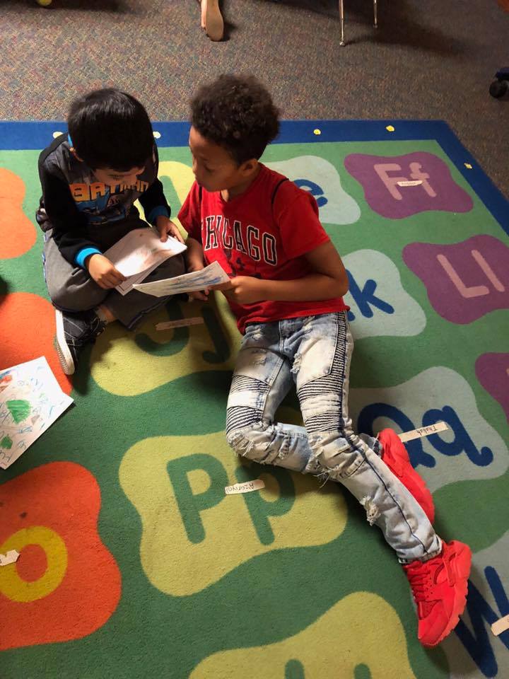 Ms. Feinberg's and Mrs. Funderburg's classes are book buddies. Our kindergarteners were very proud to share the stories they had written with the big kids.